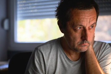 Mature man focused on computer screen in home office