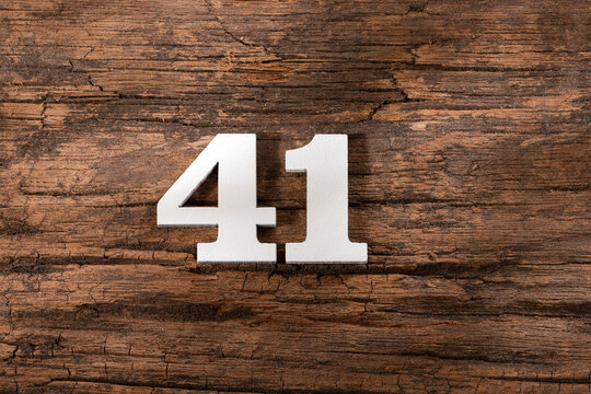 Forty One ( 41 ) white number wooden Isolated Red Background with Copy Space - New promotion 41% Percentage  Business finance Concept