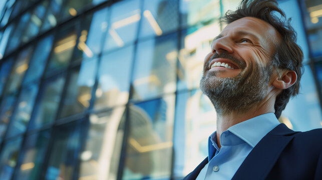 Seasoned caucasian businessman, 42 years old, smiling and confident