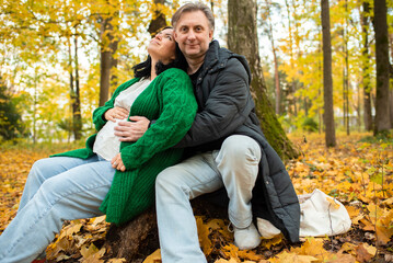 White smiling woman 42 years old in the Park on a cloudy summer day