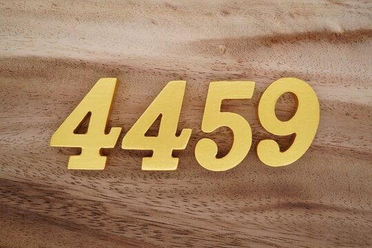 Golden Arabic numerals on a real brown and white wooden floor number 4459