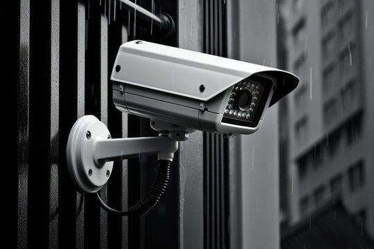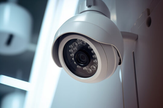 Modern CCTV camera on a wall. Concept of surveillance and monitoring.