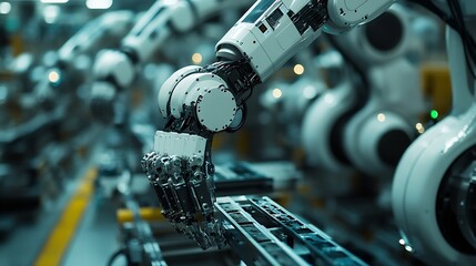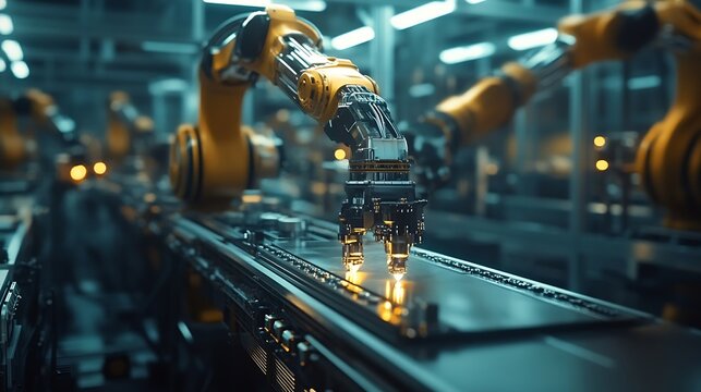 MLP Smart industry robot arms for digital factory production technology showing automation manufacturing process of the Industry 40 or 4th industrial revolution and IOT software to con : Generative AI