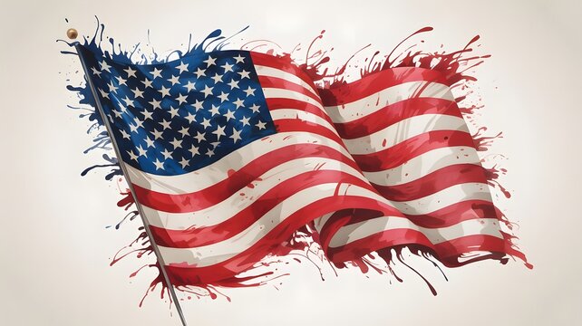 Waving flag with red and white stripes, and stars on blue background, lays on wooden surface, showing freedom, patriotism, and remembrance, space available