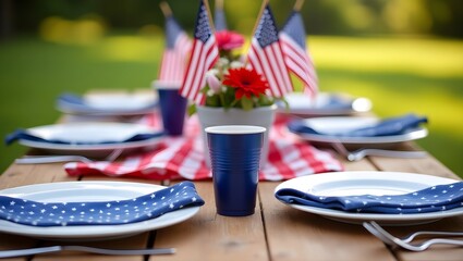 Outdoor Table Setting with Patriotic Colors for BBQ