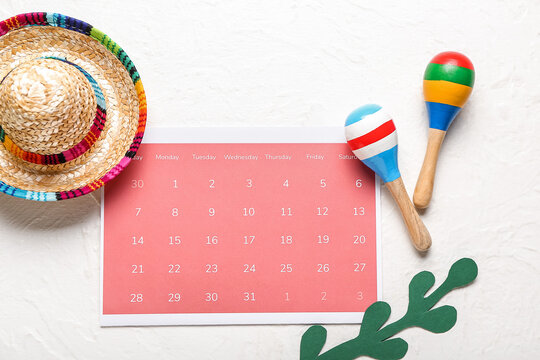 Traditional Mexican food and mobile phone on flag. Cinco de Mayo (Fifth of May) celebration
