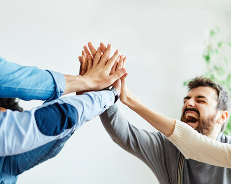 A group of people are holding a star in the air. Concept of teamwork and collaboration