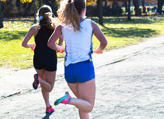 Synthwave effect macro portrait of a professional runner shoes running on a race