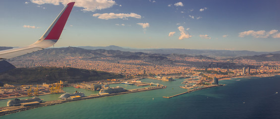 Aerial view of the city of Barcelona. I took it from an plane Airbus A320 on my trip from Casablanca to Barcelona with Air Arabia flight 3O373, 05 May 2019