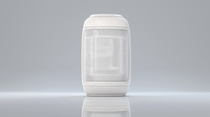 Minimalist Cylindrical Bluetooth Speaker: Modern Portable Design, Isolated on Gray Background, Soft Reflections, Realistic Mesh Texture, DSLR 50mm Capture