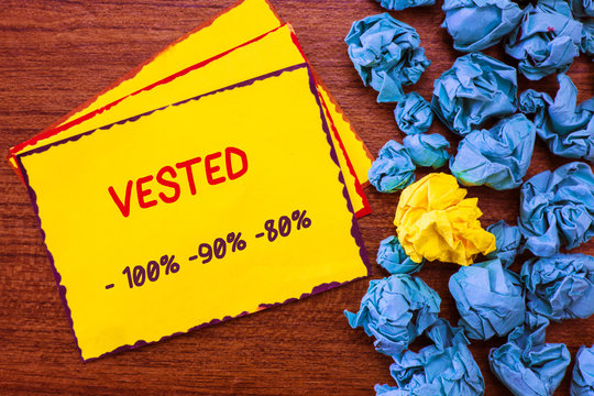 Conceptual hand writing showing Vested 100 90 80. Business photo showcasing Eligible for Retirement Benefit based on years of Service.