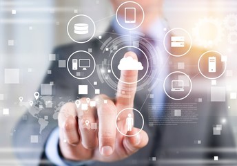 Business and technology concept. Man touching business