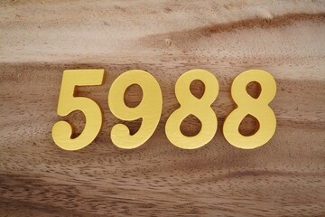 Golden Arabic numerals on a real brown and white wooden floor number 5988