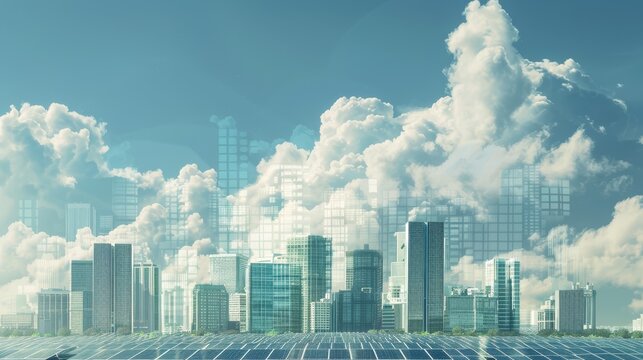 The essence of connectivity, with clouds and stars intertwined by binary links over a technologically advanced city, symbolizing the unlocking and evolving of data at night.