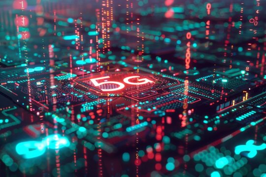 Futuristic Technology Background With Glowing 5G Text On Circuit Board, Concept For Innovation