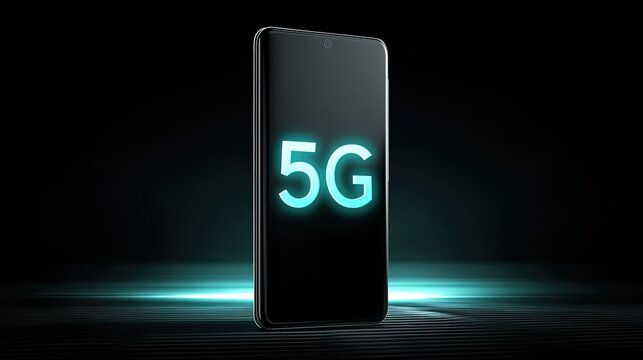 Smartphone displaying glowing 5G projection with dynamic light patterns