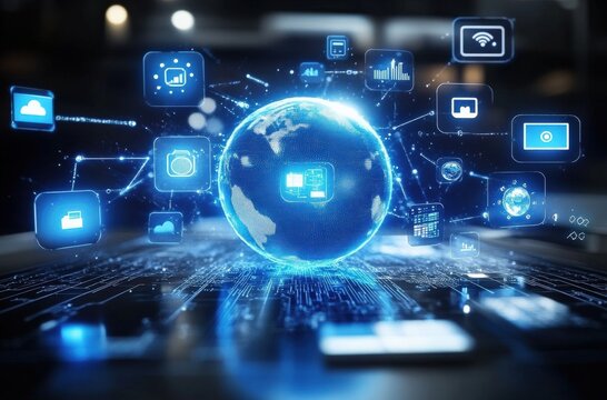 Innovative digital data visualization with glowing holograms
