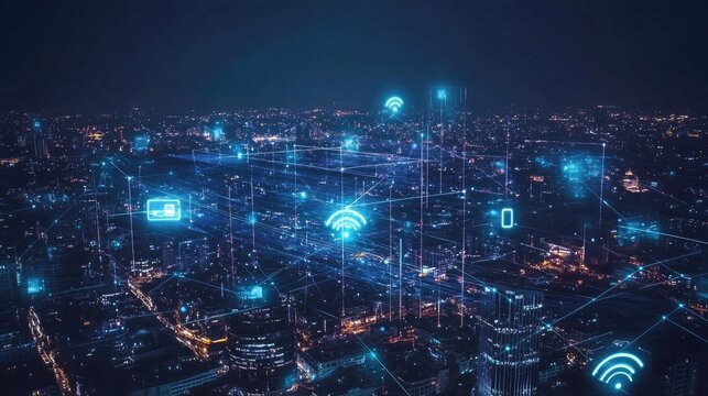 Wireless network technology and Connection concept, Network on city background