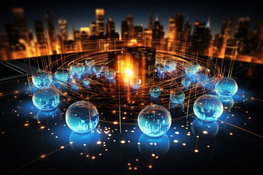 Digital 5g network with glowing connections