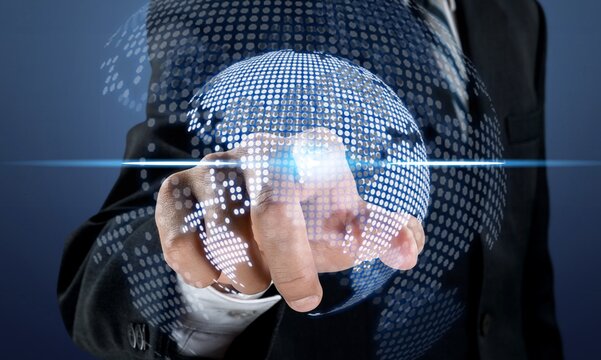man hand holding night earth with global network communication technology including earth crptocurrency, blockchain, iot, 5g Earth day energy for envirionment Elements of this image furnished