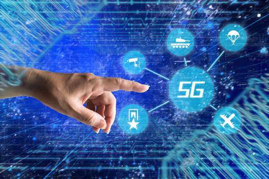 Low latency 5G technology – Glowing 5G Symbol on a Futuristic Circuit Background with Digital Elements