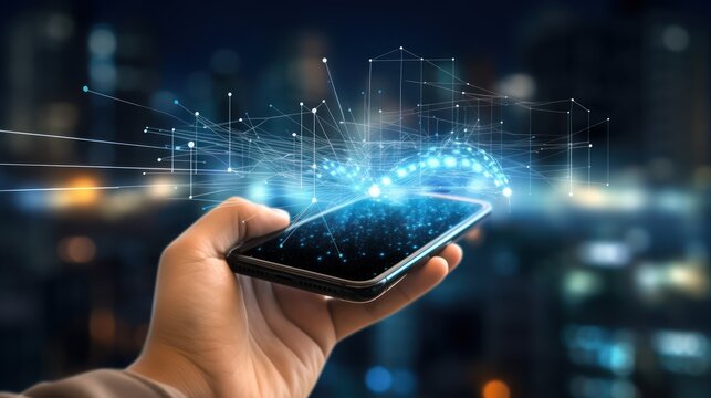 hand hold mobile phone and the big data wireless 5G connecting, technology, networking, digital, business, connect, communication, smartphone, online, cyberspace, social, media, interface
