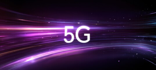 5g technology concept with dynamic light trails and text design