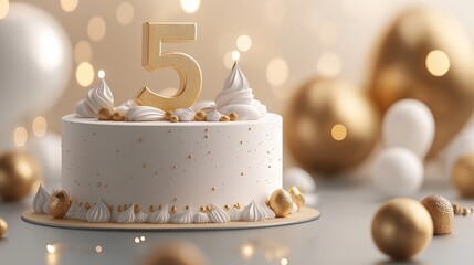 Happy 5Th Birthday. Celebrate with Cheerful 3D Illustration of Party Celebration