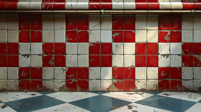 charming display with a vintage checkerboard center and classic diner border, perfect for showcasing nostalgic collectibles and dinerware products.