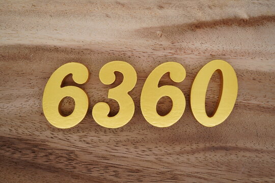Golden Arabic numerals on a real brown and white wooden floor number 6360
