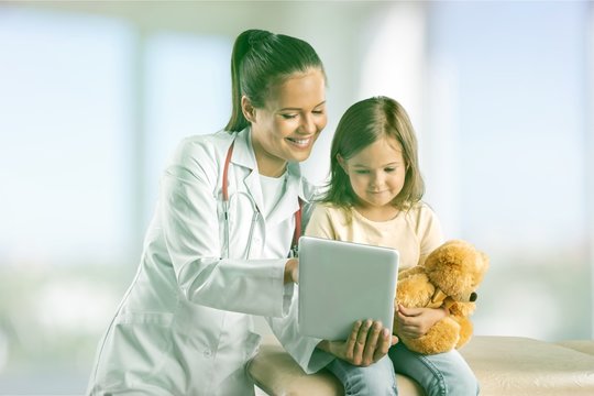 Young woman doctor with little girl