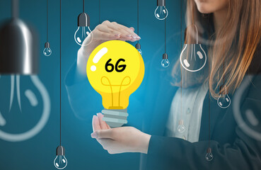 Business, technology, internet and network concept. Young businessman thinks over the steps for successful growth: 6G
