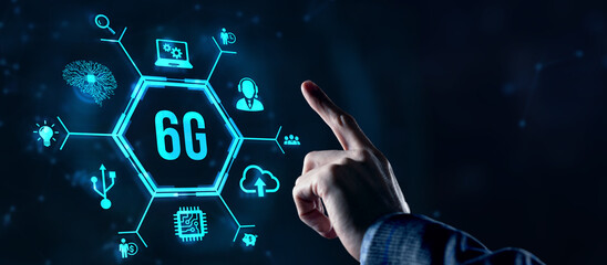 The concept of 6G network, high-speed mobile Internet, new generation networks. Business, modern technology, internet and networking concept.