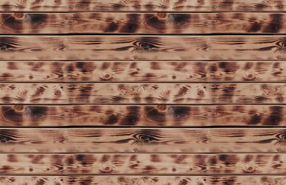 Pine wood wall seamless photo background. Pine boards building paneling with burnt surface effect. Natural wood background.