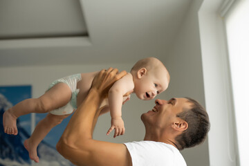 Loving mom holding her 6 months old baby inside bedroom - Mother and child love