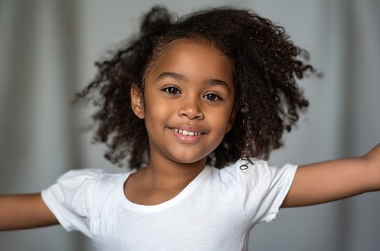 An Adorable black american little girl with beautiful hairstyle
