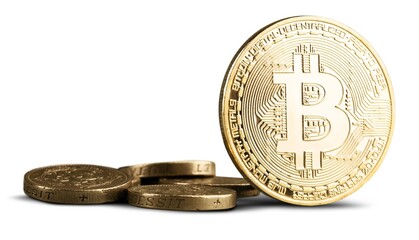 Digital currency symbol on a shimmering gold backdrop, representing business and finance concepts
