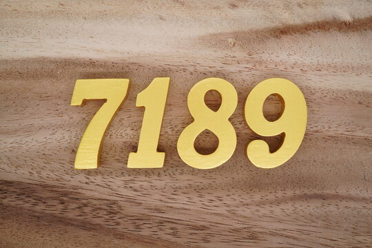 Golden Arabic numerals on a real brown and white wooden floor number 7189