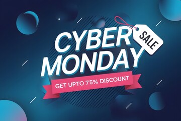 Cyber monday sale with up to 75 discount, abstract dark blue background with circles and light effects, ecommerce promotion concept