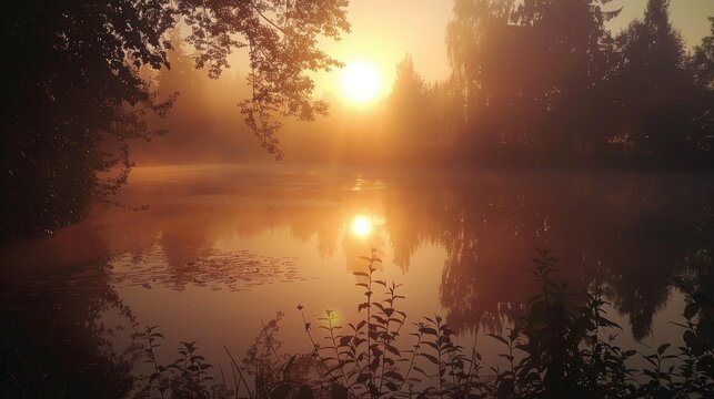 Pixelated night fountain spraying glowing arcs and central jet reflecting on calm water