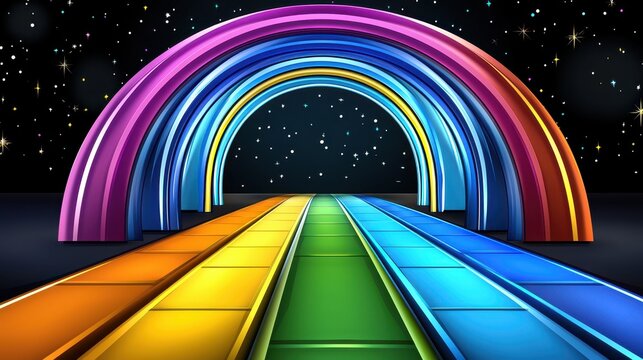 Pixel Rainbow Archway Leading to Glowing Path in Starry Night