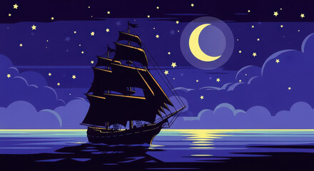 Pixel moonlit nightscape with giant full moon and layered clouds in retro 8-bit style