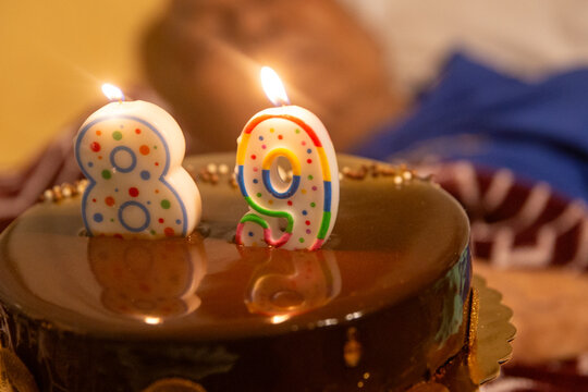 Top view of decoration birthday copy space. Happy birthday for eighty nine years old. Beautiful congratulations for 89 years