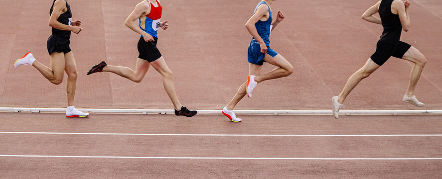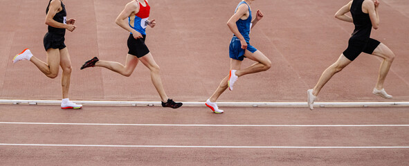 Group male athletes run middle distance race. Horizontal sport theme poster, greeting cards, headers, website and app