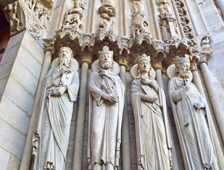 The Notre Dame cathedral of Paris details, France, on April 15, 2015, one of the most famous landmarks in Paris. In 2013, the cathedral celebrate its 850 years anniversary.