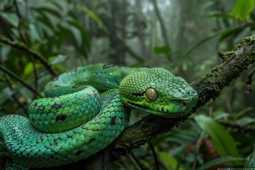 Trimeresurus Insularis commonly found in tropical forests up to 880 meters altitude in shrubs bamboo forests and near rivers on tree branches