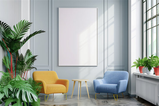 Modern Waiting Room with Colorful Chairs - large-format poster mockup