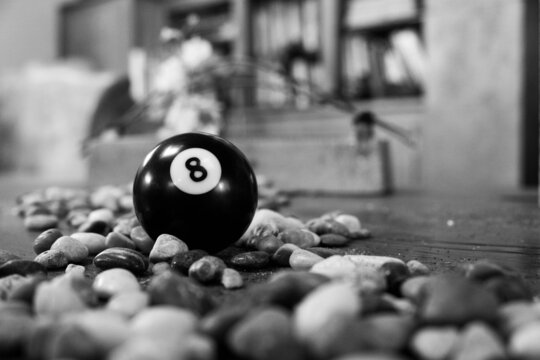 Pool tables in dimly lit club room. Billiard balls racked and scattered on green felt. Cue sticks rest nearby, awaiting players for a game of nine ball or snooker. Leisurely atmosphere.