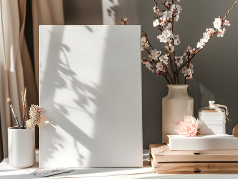 "Spring style picture frame, cherry blossom style" - Mockup, size 60 x 90cm, art, canvas, painting