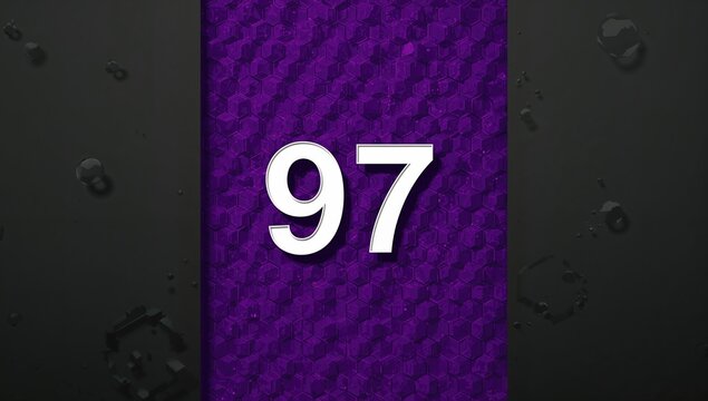 White Paper Cut Number 97 on a purple honeycomb grid background, used for layout design, Earth Day